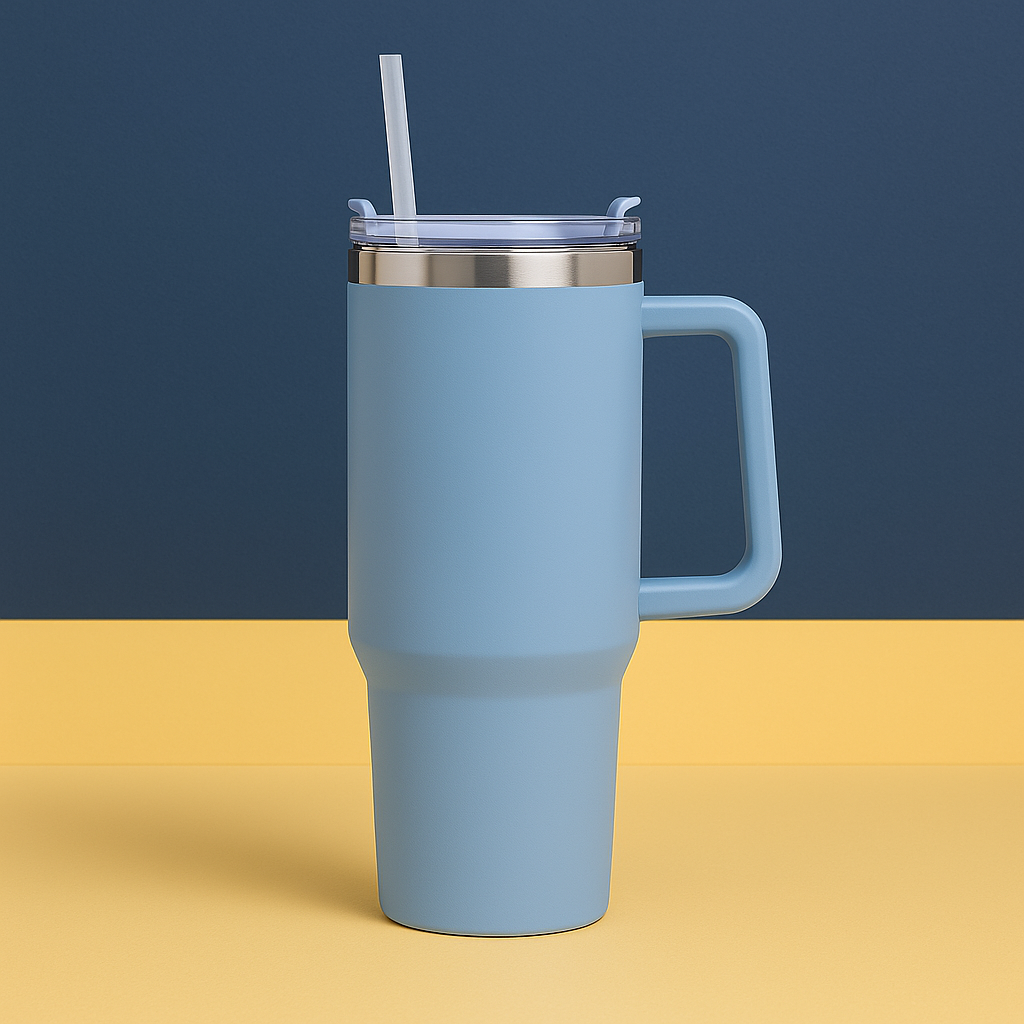 Copo Quencher Caneca Inox com Alça e Canudo (1200 ml) - Azul Bebê