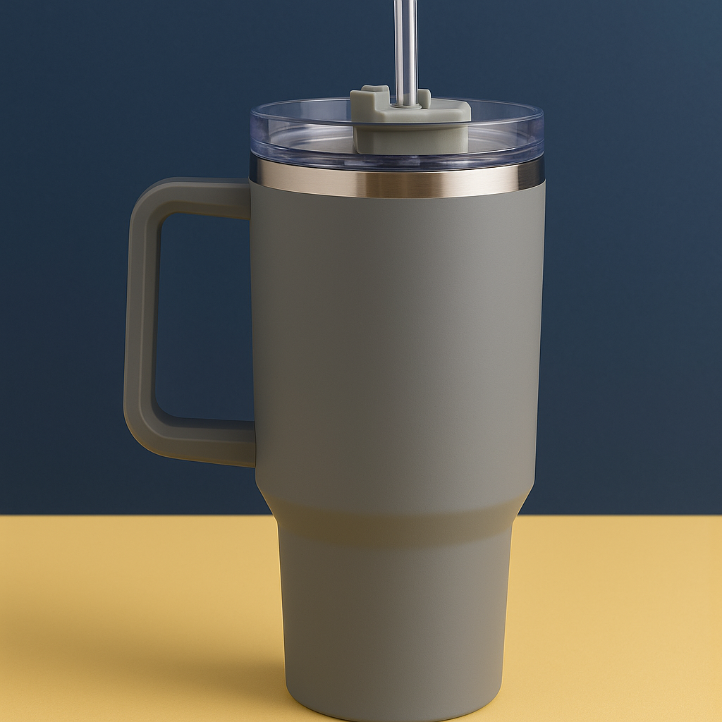 Copo Quencher Caneca Inox com Alça e Canudo (1200 ml) - Cinza