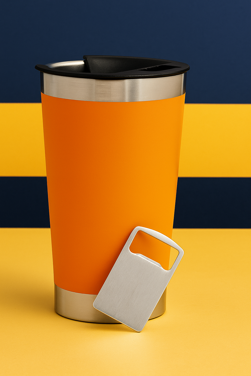 Copo Térmico Inox com Tampa e Abridor 473ml – Laranja