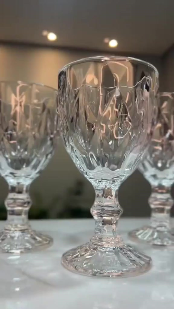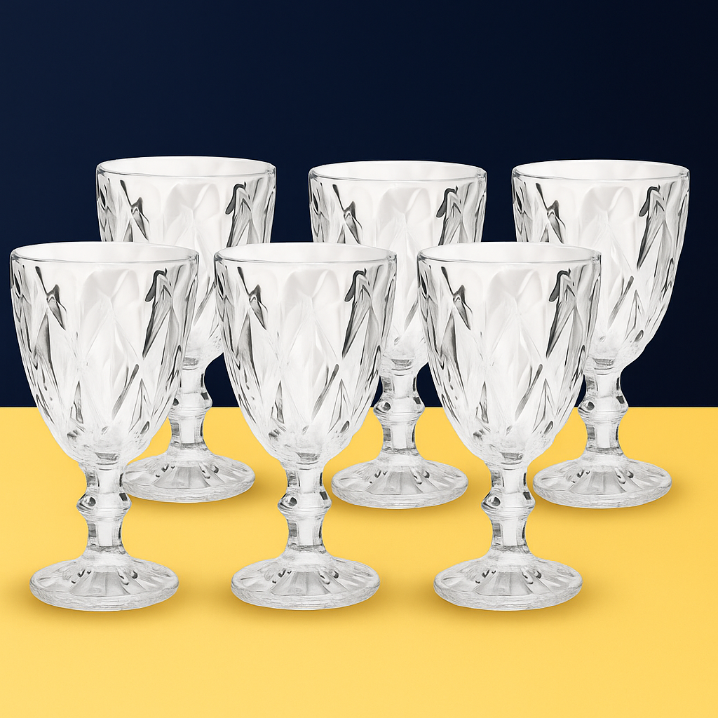 Deixe sua mesa mais elegante com o Conjunto de Taças Diamond 330ml. Design refinado, vidro de alta qualidade e capacidade perfeita para vinhos, sucos, drinks ou água com muito mais charme.