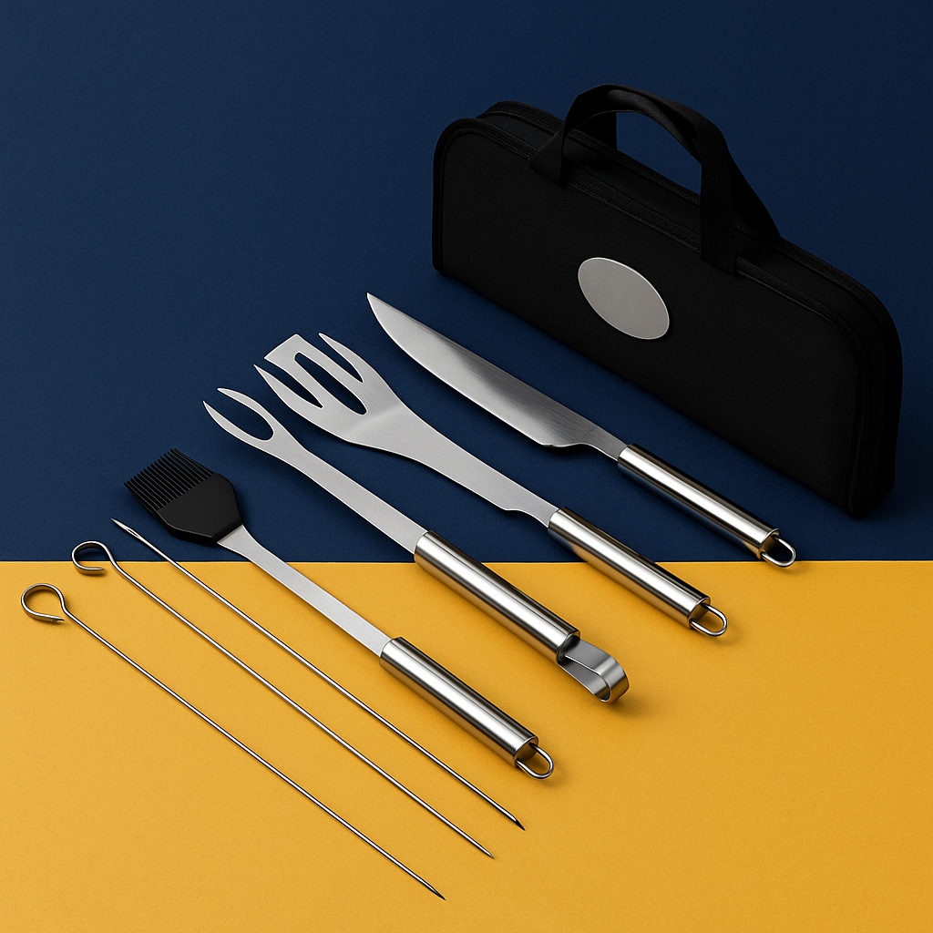 Fabricado em aço inoxidável resistente e acomodado em uma maleta elegante e funcional, este conjunto acompanha você em qualquer ocasião — seja em casa, na praia, no camping ou em um evento especial. Mais que um kit: é uma experiência completa para churrasqueiros exigentes.