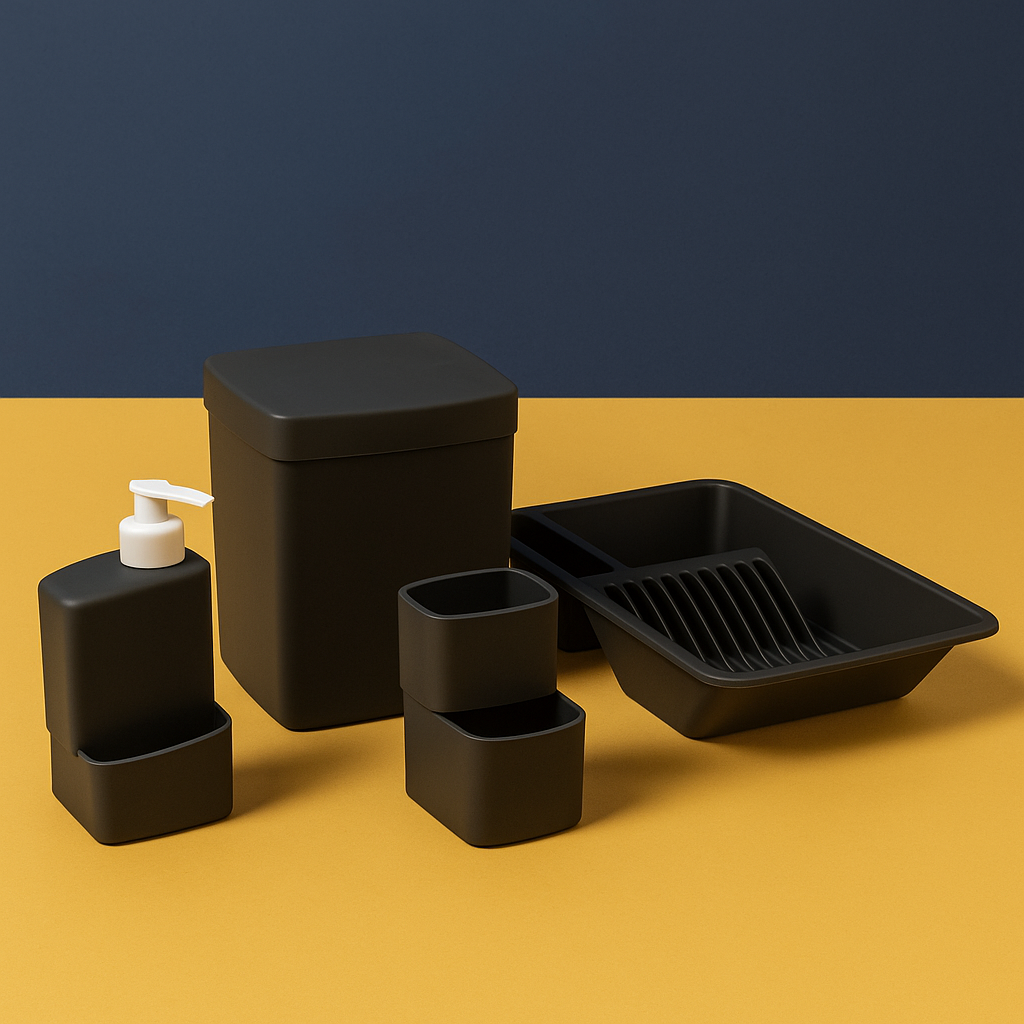 Transforme sua rotina na cozinha com o Kit Organize Sua Pia Full – 4 Peças Utility. Funcional, compacto e com design sofisticado em preto fosco, esse conjunto é a escolha ideal para quem busca praticidade, higiene e elegância na organização da bancada da pia.