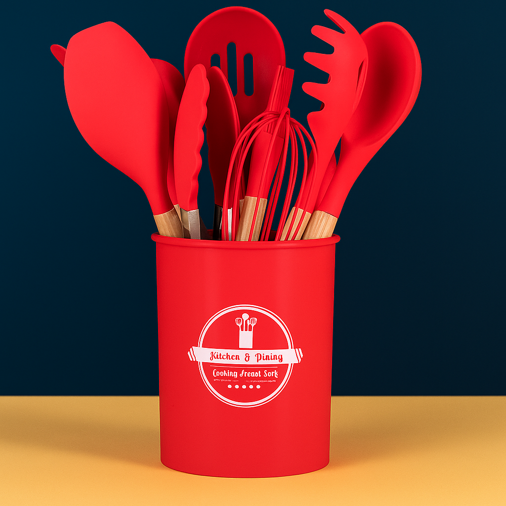 Adicione um toque de elegância e eficiência à sua cozinha com o Kit de Utensílios de Cozinha 12 Peças – Silicone Vermelho com Cabos de Madeira. Esse conjunto é a escolha perfeita para quem busca praticidade, beleza e durabilidade no preparo das refeições.